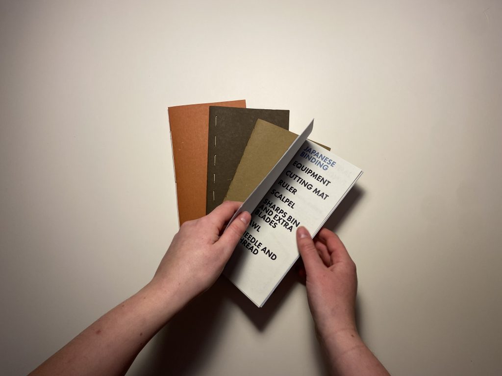 The language surrounding bookbinding has guided my iterative experimentation into three distinct chapters. The first chapter looks at ‘The Bind’. This body of work is characterised by building foundational knowledge about specialist bindings, specifically Singer Sewn, Side Sewn, Japanese Binding and Three Hole Sewn.